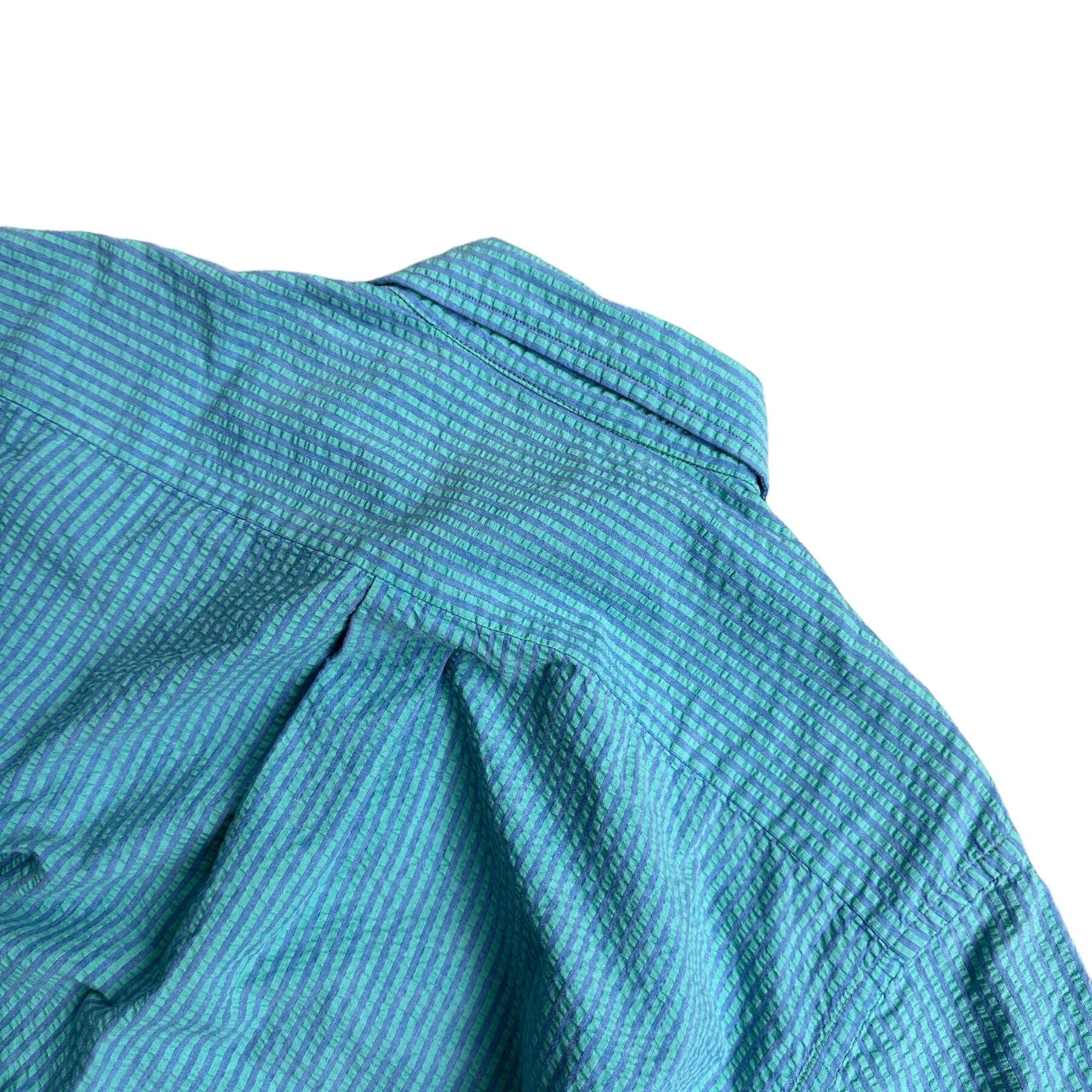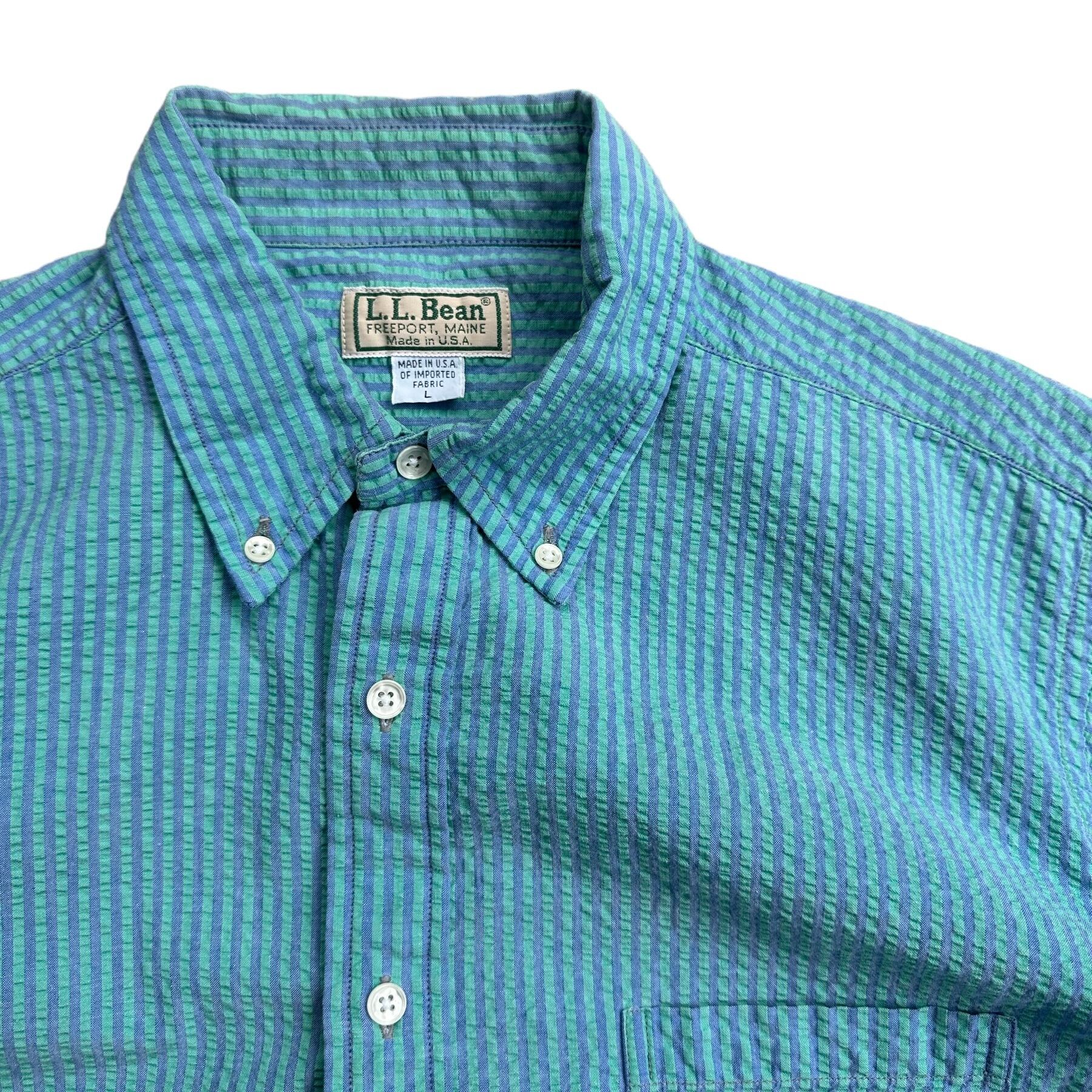 80-90s "L.L.bean" seersucker stripe s/s BD shirt
