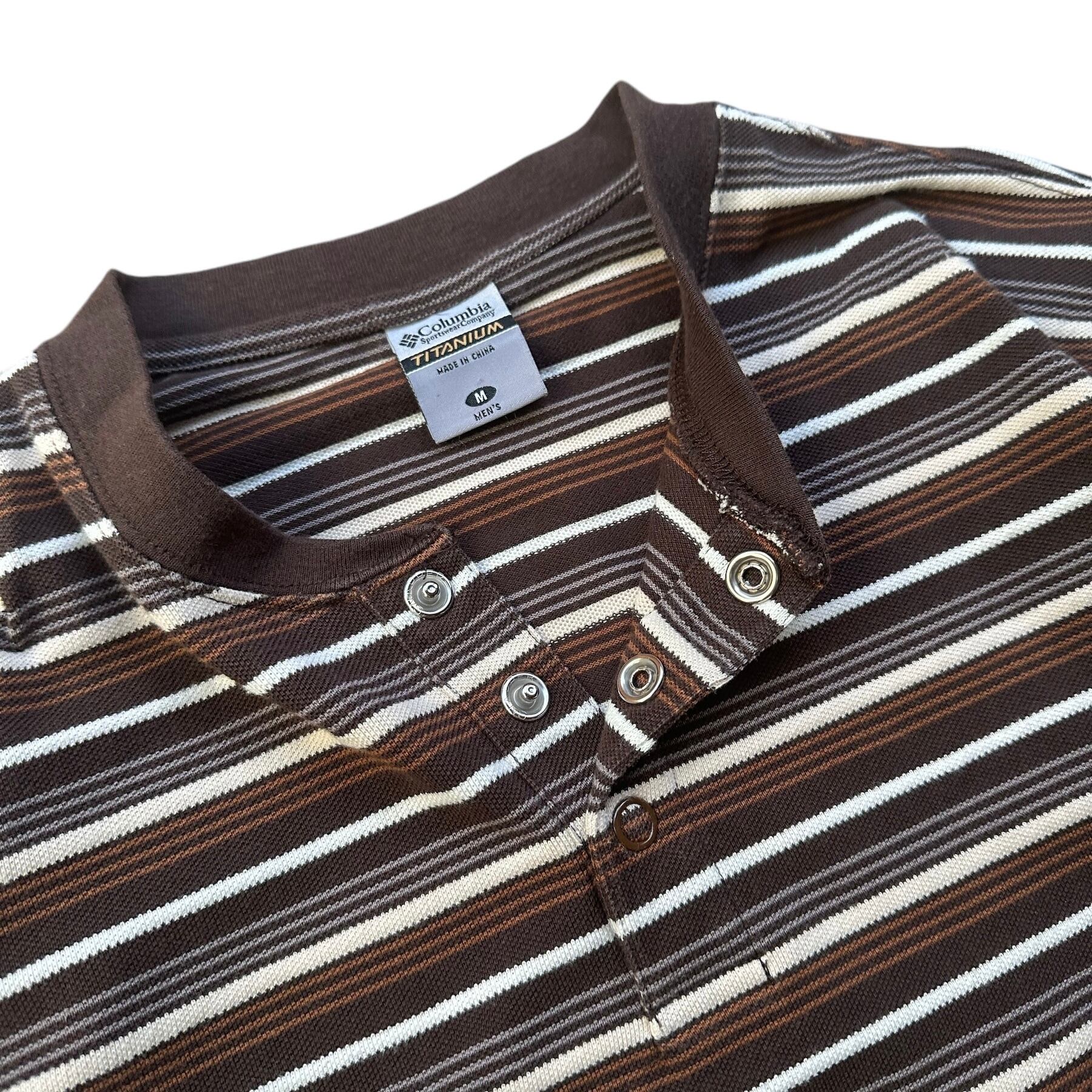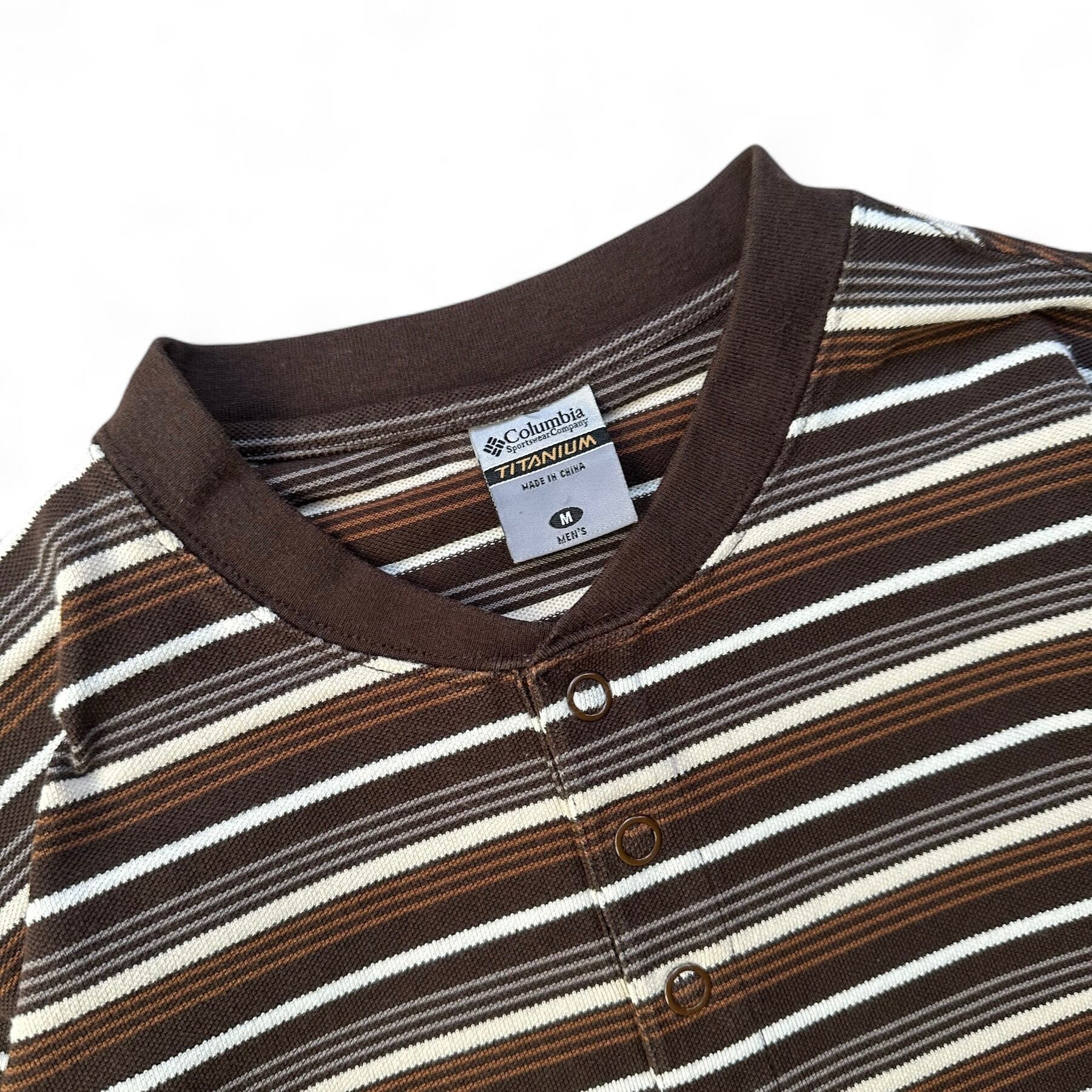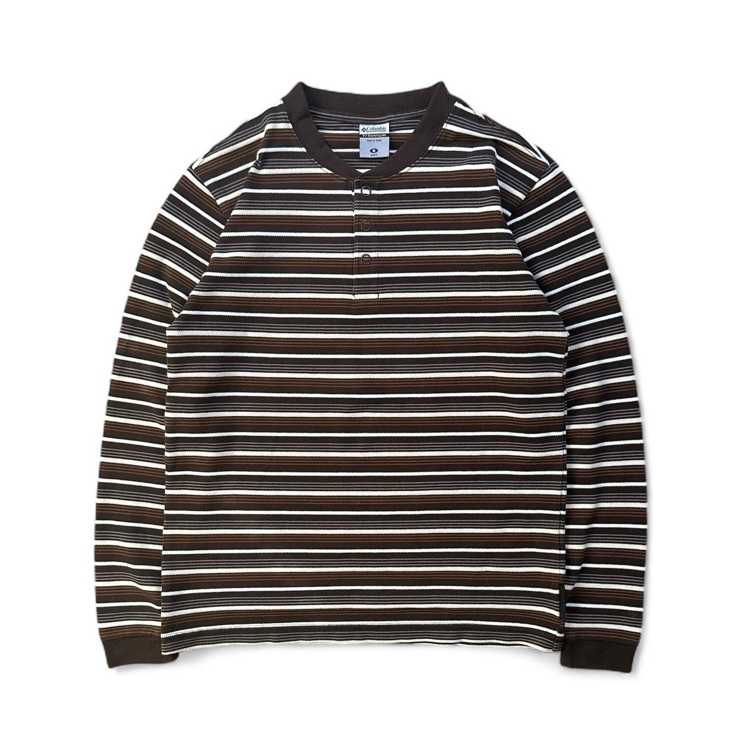 00s "columbia" TITANIUM multi border henry neck l/s tee